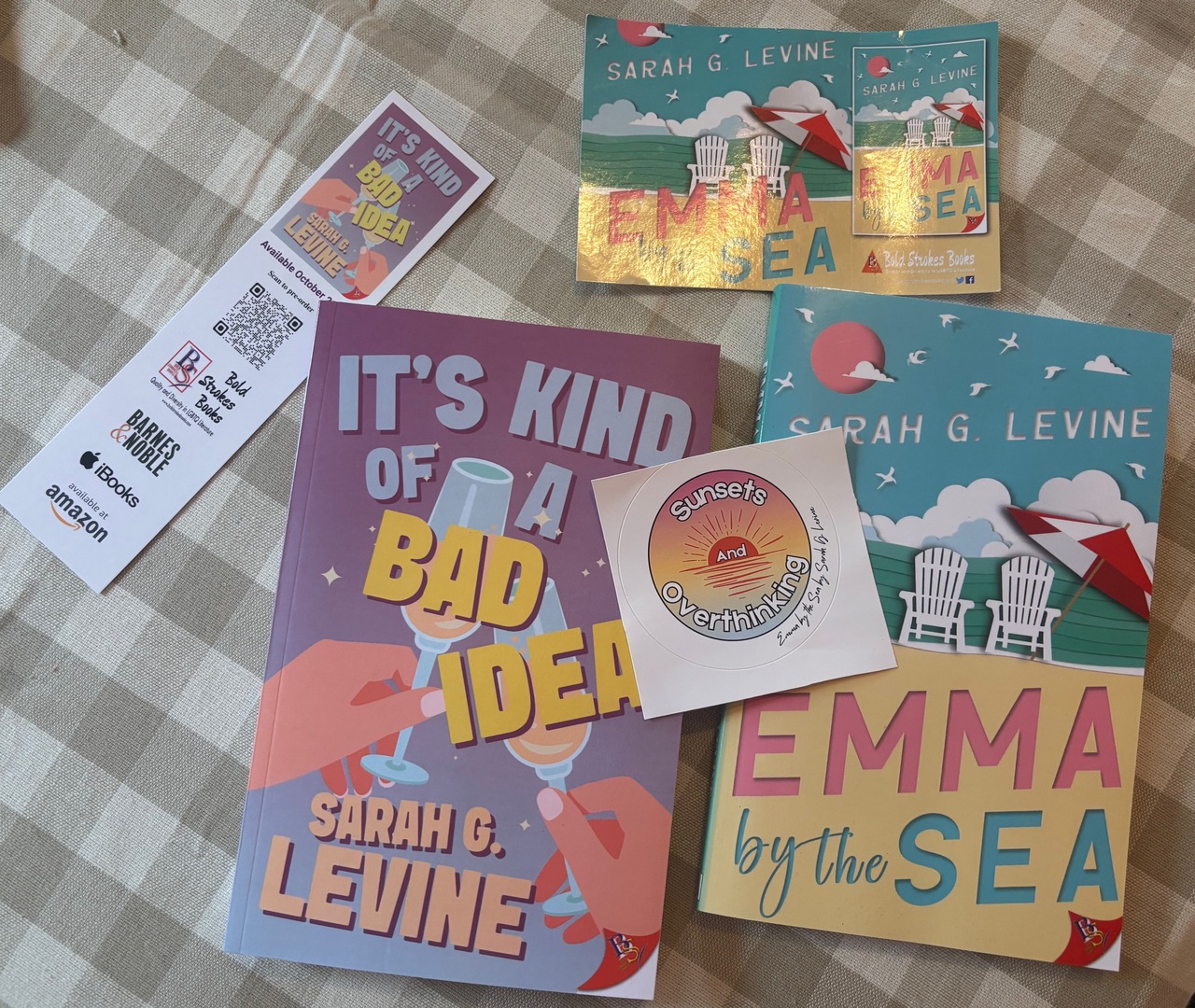 Bundle includes: Signed copies of It's Kind of a Bad Idea and Emma by the Sea with stickers, book mark, and postcard.